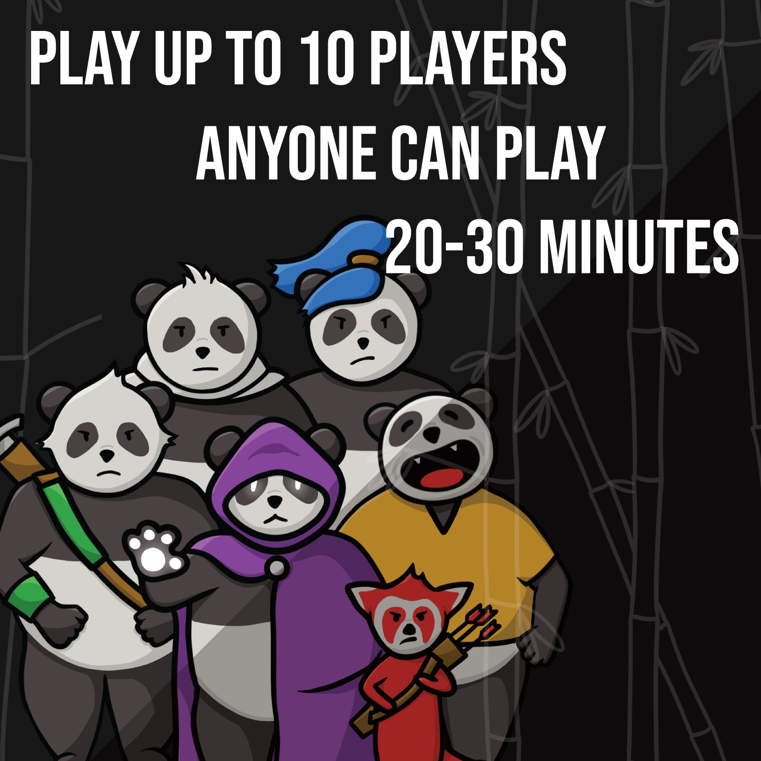 Each year as the mid-summer festival begins, the seven panda clans gather to celebrate their many years of peace and prosperity. After all the feasts, stories and games the Elders host the annual competition wherein the bravest of all pandas gather together to battle for honor and glory. The panda clans each have their own powers and abilities and the Elders consider those strengths carefully as they assemble their teams from members of each of them.