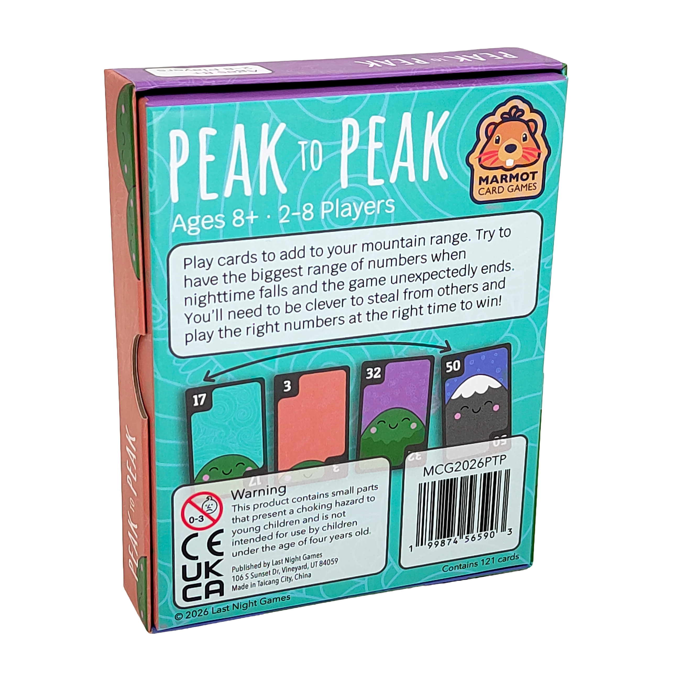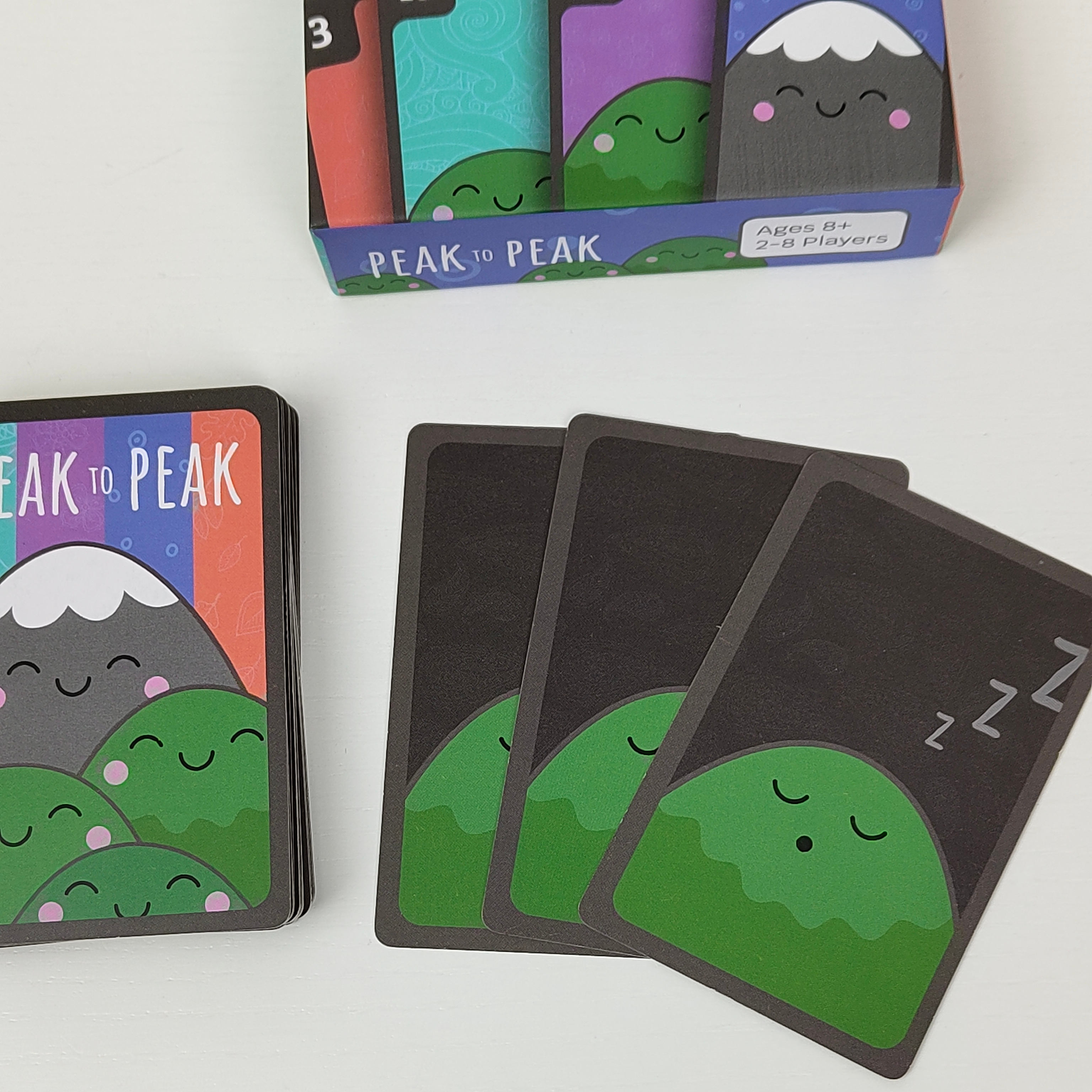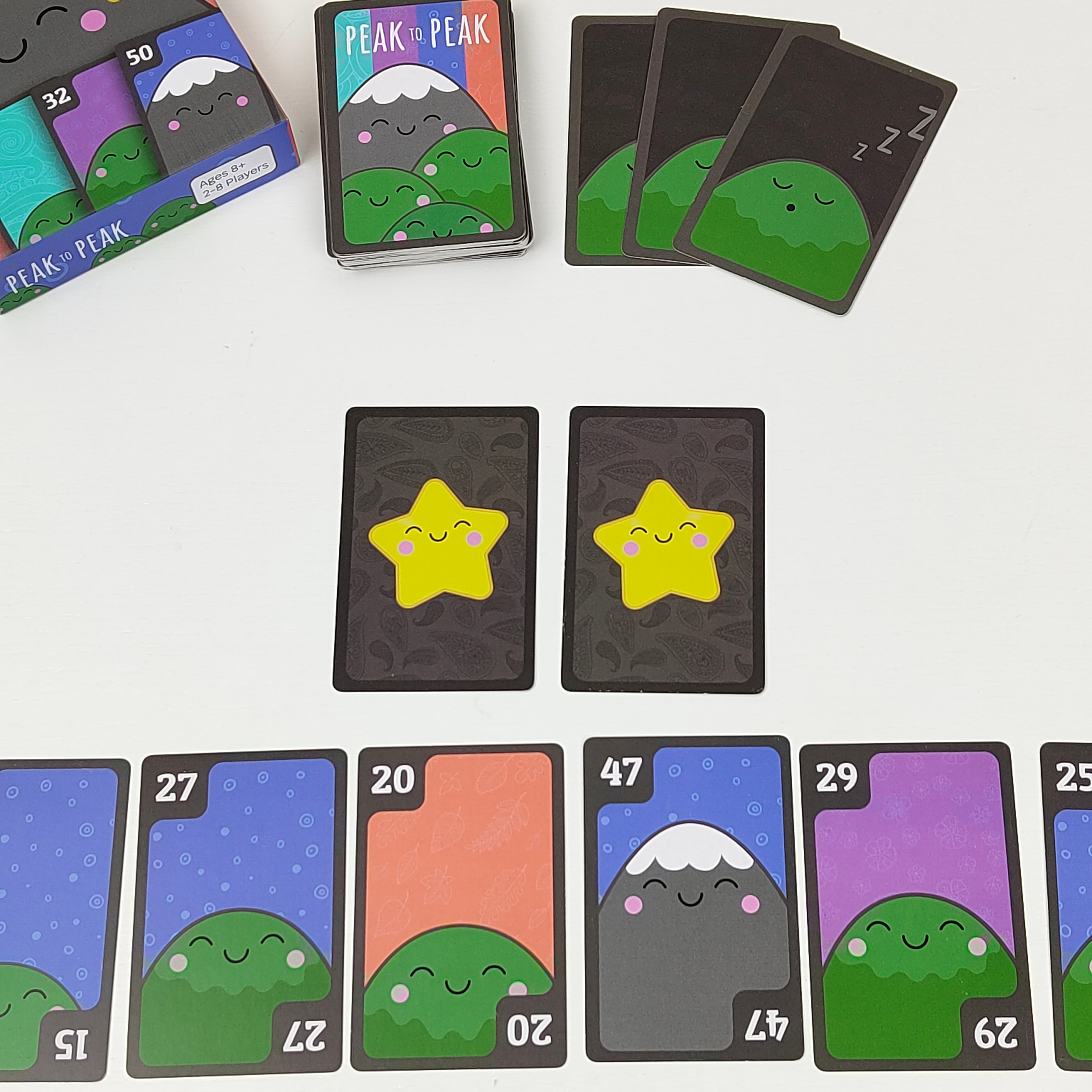 Play cards to add to your mountain range. Try to have the biggest range of numbers when nighttime falls and the game unexpectedly ends. You'll need to be clever to steal from others and play the right numbers at the right time to win!